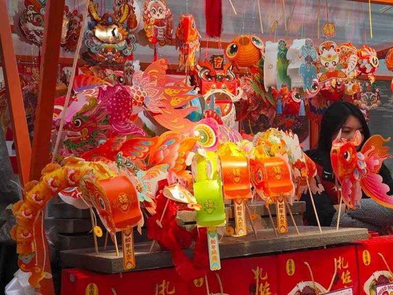 除了特色美食,集市还有不少装饰品摊位。传统非遗鱼灯、少数民族手作饰品、窗花对联福字挂件等吸引着市民游客的眼球。不少市民精挑细选一束鲜花,让家中染上盎然生机活力;或是买一盏称心如意的鱼灯,将福气好运带回家里。“花灯很好看,制作也精美,放在家里是很好的装饰。”市民杨先生说。