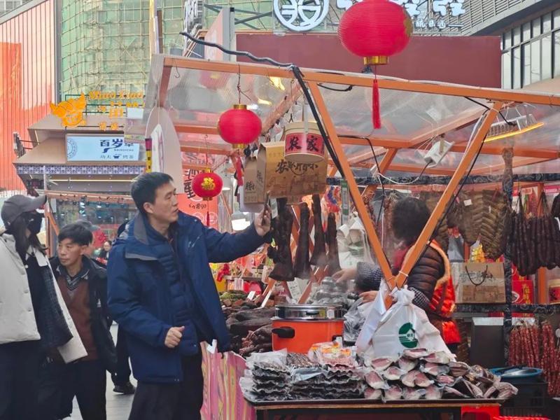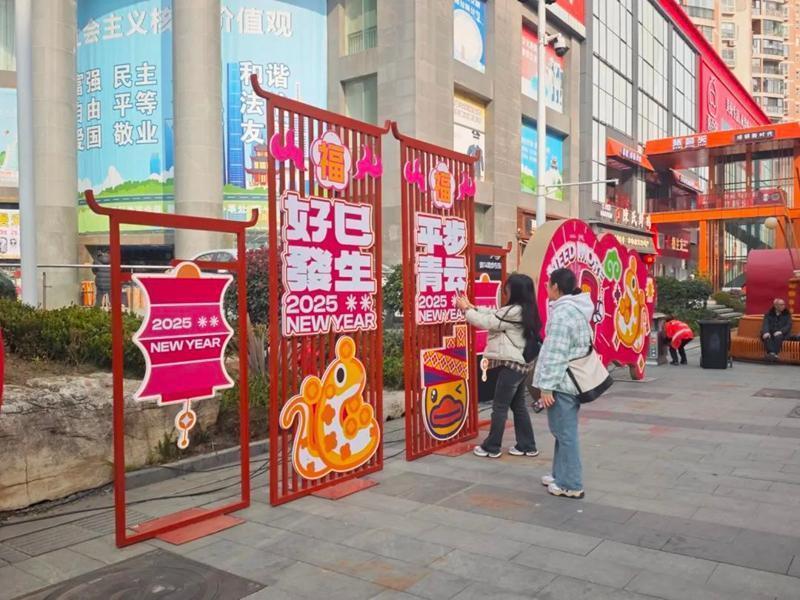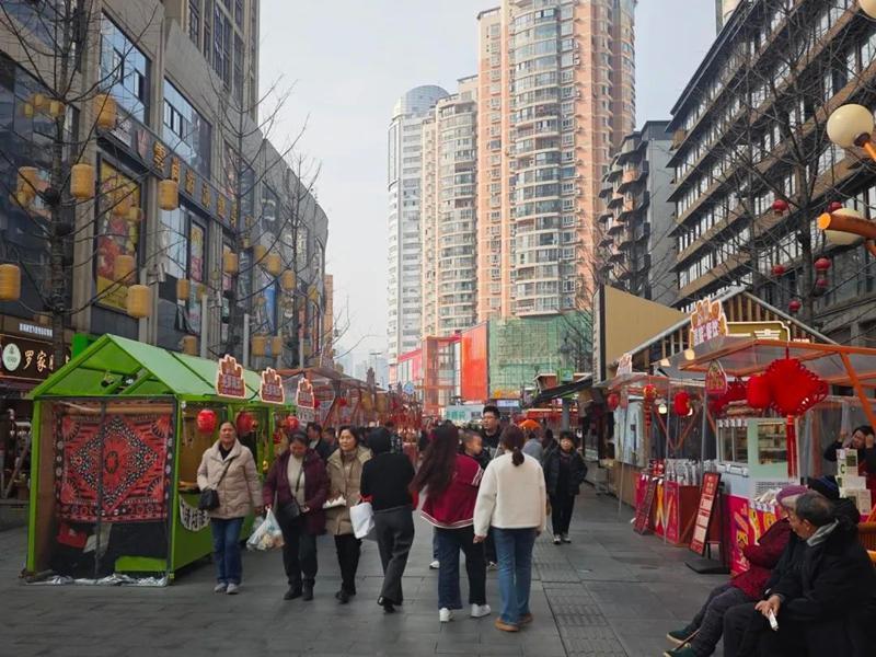四九至,巳蛇年近。连日来,走进贵阳市南明区青云路步行街、曹状元街区,看到街上人群熙攘,喧嚣盈耳,在街区开展的新年市集充满浓浓烟火年味,各色各样年货琳琅满目,商客交谈间,尽展新年气象。