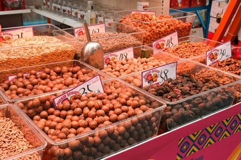 在青云路步行街,两侧摊位前人头攒动,一盏盏大红灯笼、别致喜庆的对联窗花展现出春节的热闹气氛。凯里农家腊肉、毕节手工汤圆、老贵阳特色辣子鸡、休闲瓜子零食……漫步青云路步行街,游客可以一站式完成年货采购,各地美食尽收囊中。